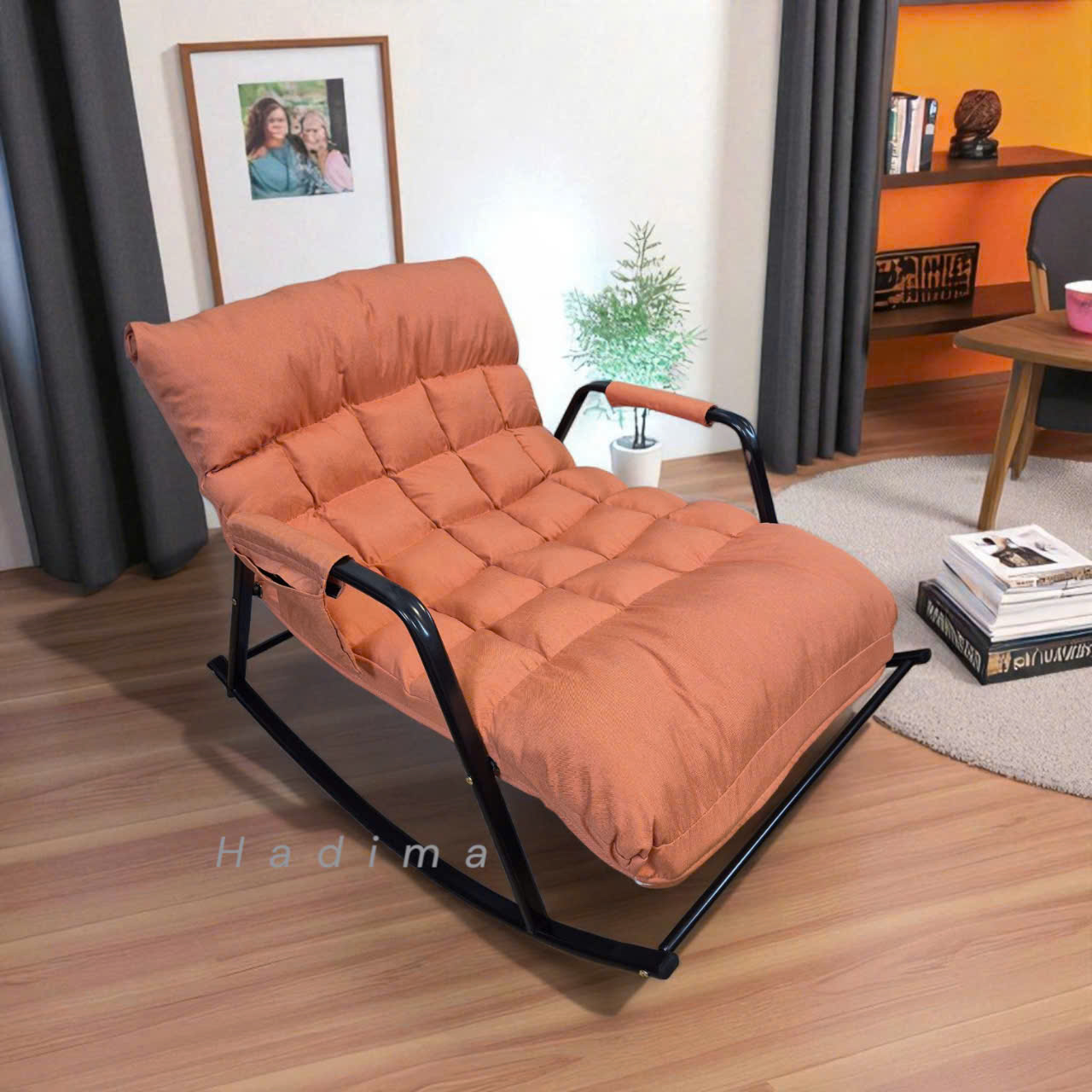 Ghế bập bênh bằng nỉ, ghế bập bênh chân sắt bằng nỉ, ghế thư dãn bằng nỉ là sự lựa chọn lý tưởng cho nhiều gia đình, phù hợp để đặt trong phòng ngủ, phòng khách hoặc sân vườn, mang đến những phút giây thư giãn tuyệt vời. Với khung thép sơn tĩnh điện chắc chắn và bền bỉ, ghế có thể chịu được trọng lượng lên tới 300kg.